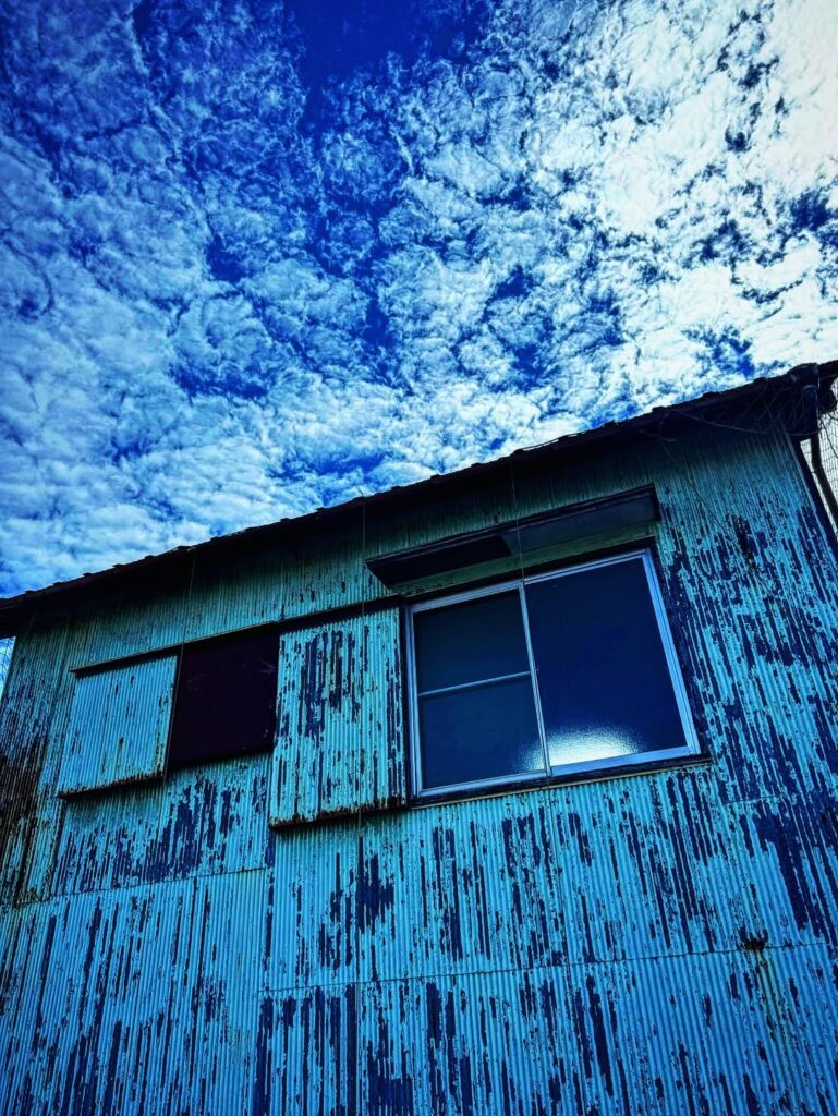 この投稿をInstagramで見る @kikkawa1956がシェアした投稿 The peeling blue wall and the infinite sky tell a quiet story of renewal. Even as time wears the surfa...