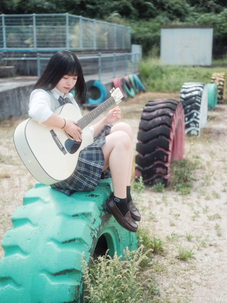この投稿をInstagramで見る ゆーさん(@yu_san_okayama)がシェアした投稿 Under the soft sunlight, she strums her guitar as if writing her own story between classe... -