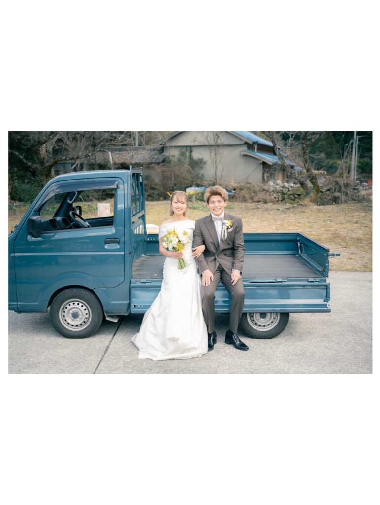 この投稿をInstagramで見る Aoba|あわいの旅(@yohaku_to_)がシェアした投稿 この写真には、結婚式の服を着た笑顔のふたりが写っています。青い軽トラックのそばに座っ...